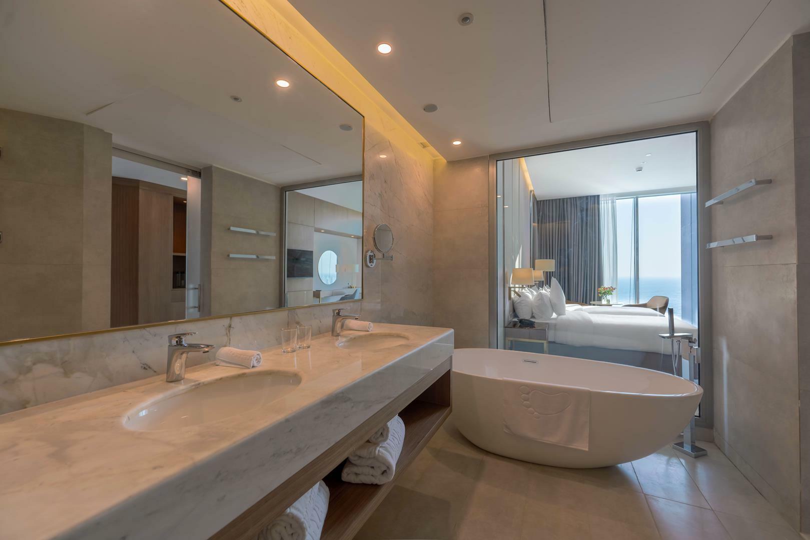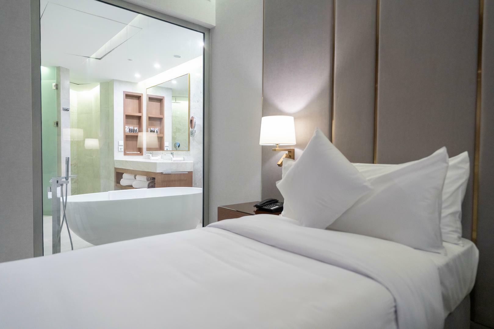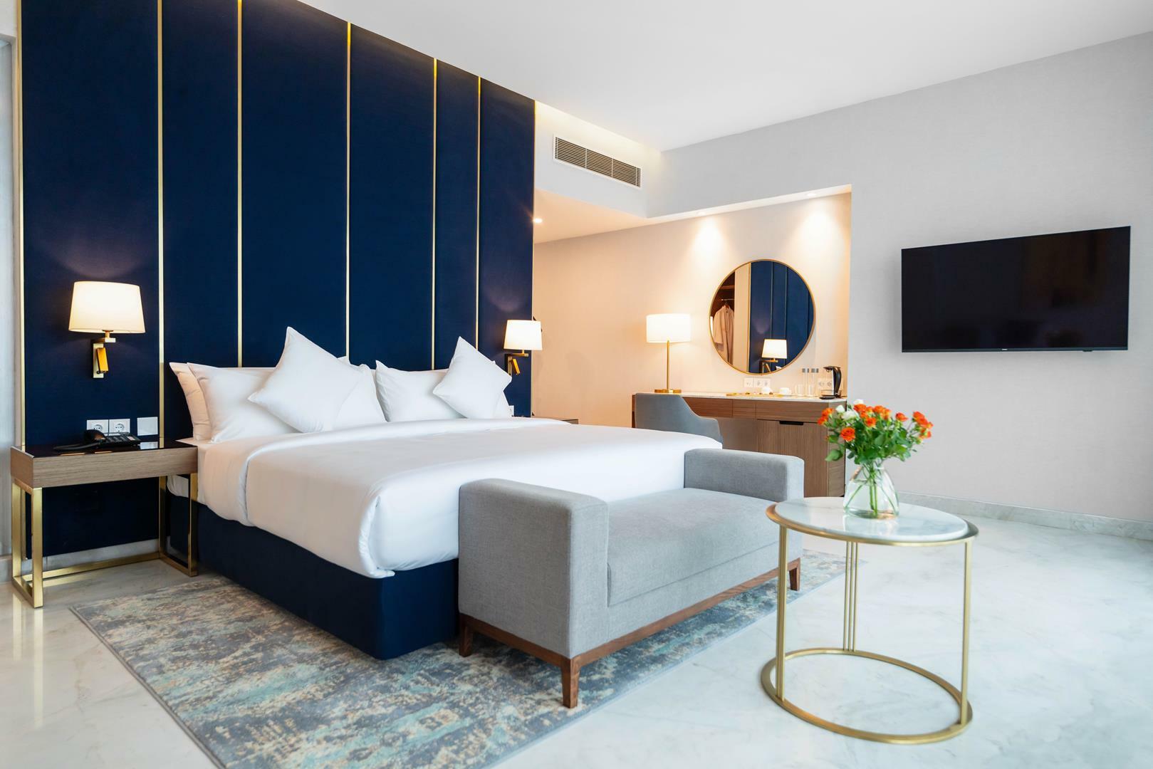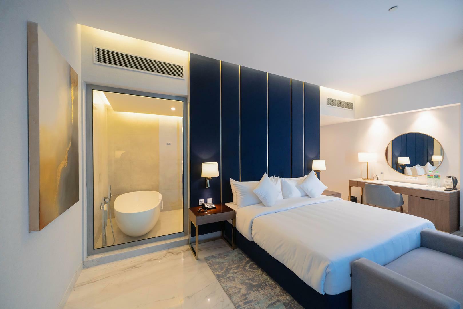 - اتاقهای مجهز و شیک: تمامی اتاقها با طراحی مدرن و امکاناتی همچون تلویزیون، اینترنت رایگان، یخچال، تهویه مطبوع و حمام اختصاصی تجهیز شدهاند.