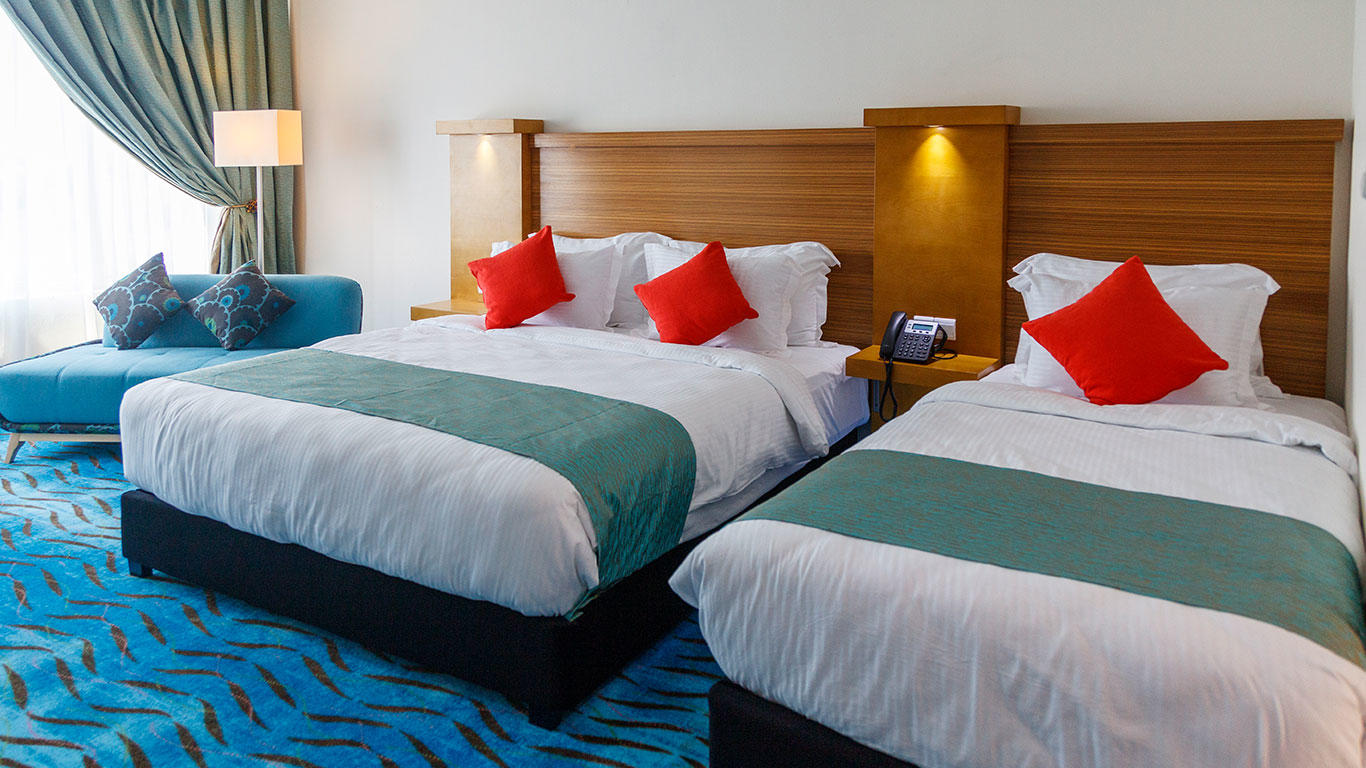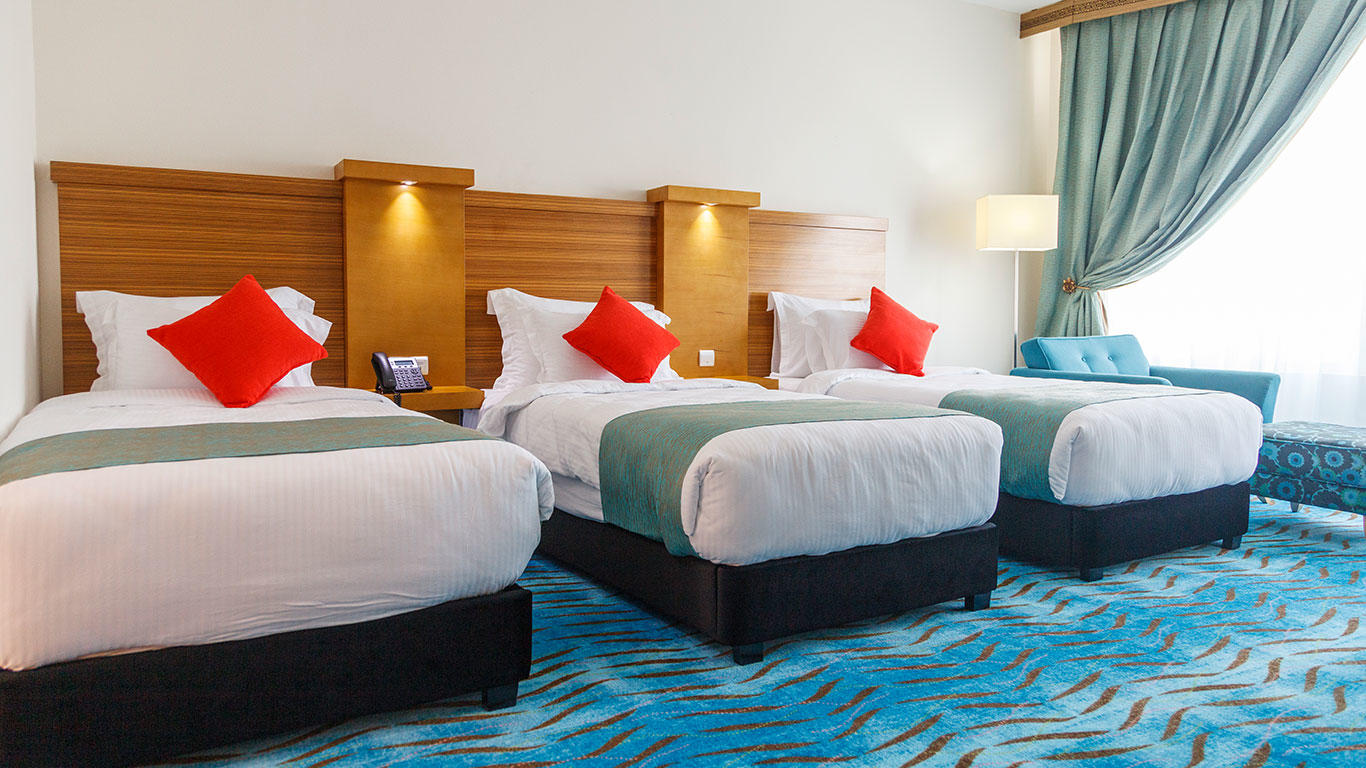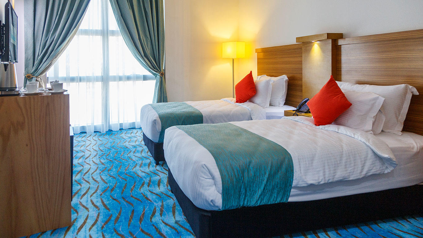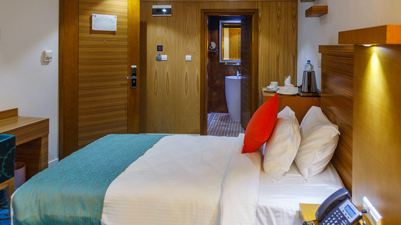 • اتاق‌های مجهز و شیک: تمامی اتاق‌ها با طراحی مدرن و امکاناتی همچون تلویزیون، اینترنت رایگان، یخچال، تهویه مطبوع و حمام اختصاصی تجهیز شده‌اند.